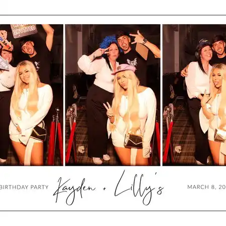 The bespoke print design was a lovely touch for a joint birthday. Having both Kayden and Lilly's names on every print strip made the keepsakes feel genuinely personal, and we know guests were tucking those prints away as proper mementos of the night.